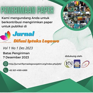 Kami mengundang Anda untuk berkontribusi mengirimkan paper untuk publiksi di Jurnal Difusi Ipteks Legowo